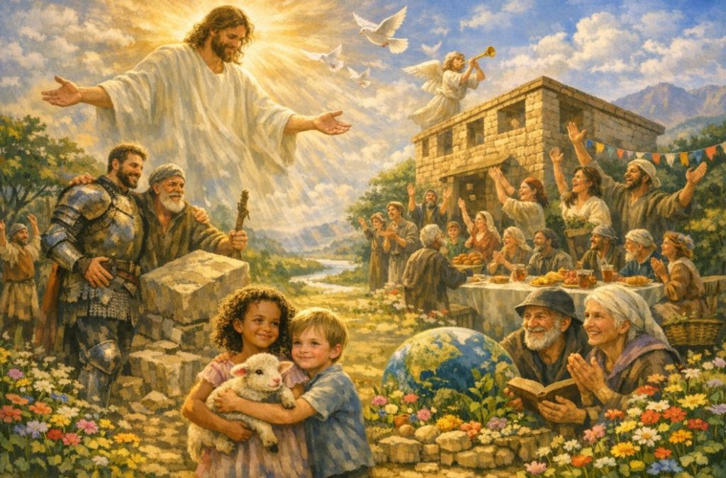 Amore per sempre, amore che non smette. Amore che pulsa in ogni fibra delle creature, in ogni alito di vita sotto il sole. Si erano corazzati per abbattermi, per calpestare a terra la mia vita ma tu ti sei abbassato fino a me, mi hai presso per mano. Mia energia e canto e’ il Signore. Dagli angoli della terra, una festa di voci per te. Chi era stato scartato e gettato via ora sostiene la casa, protagonista della storia. Questo è il tempo delle meraviglie di Dio e giorno di festa per noi: sono i poveri ed i piccoli a reggere il mondo. ( dal Salmo 117 ).